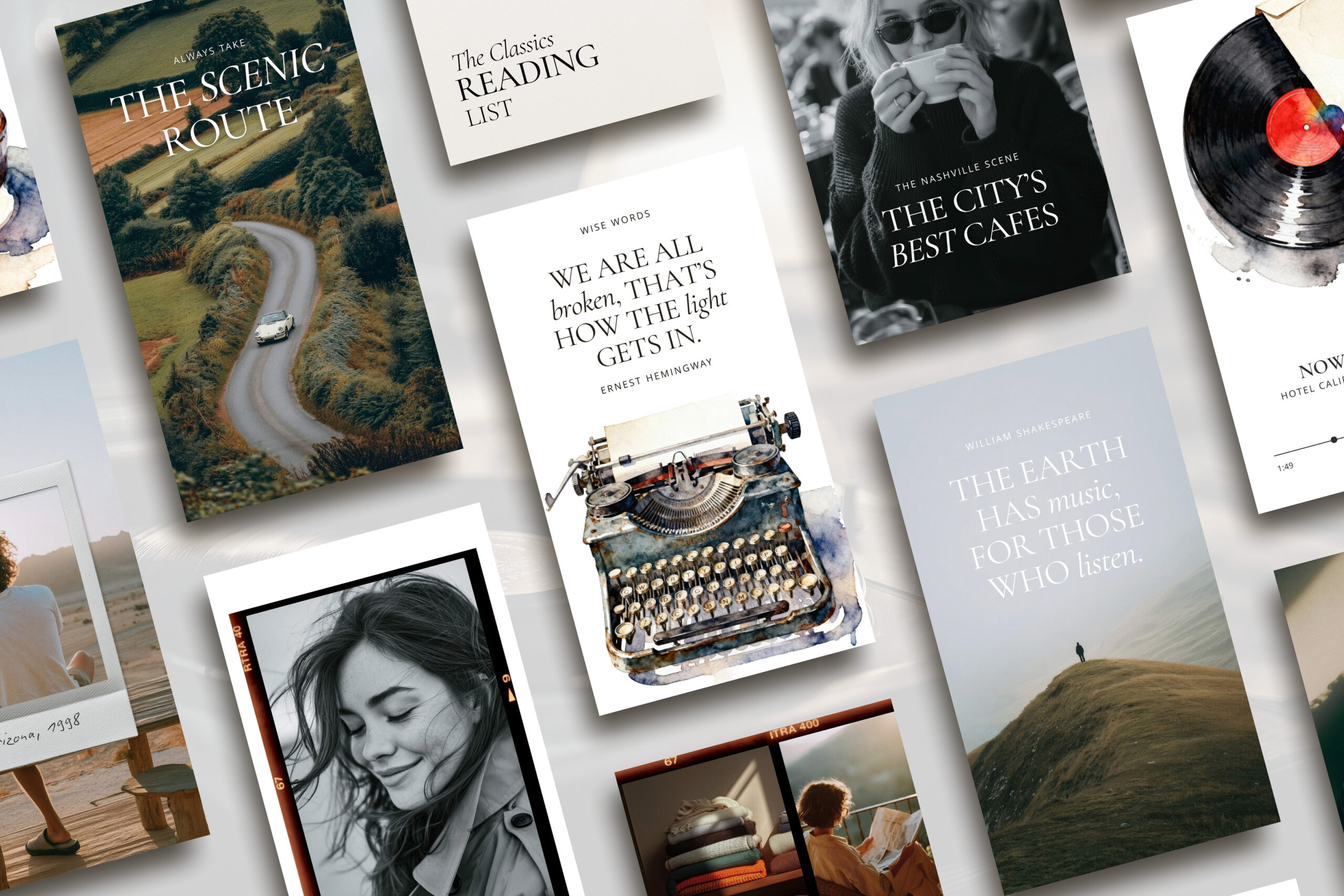 Add in film-style photography, atmospheric video, and design templates, and you have a complete visual system. Download a coffee cup from one collection and a landscape from another, and they look like they were made for the same brand. Because they were.