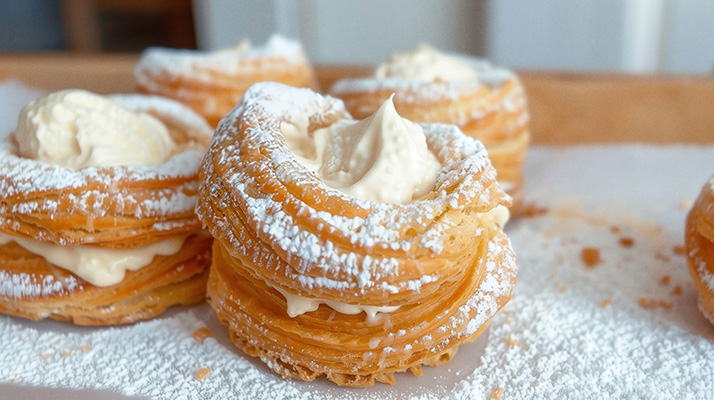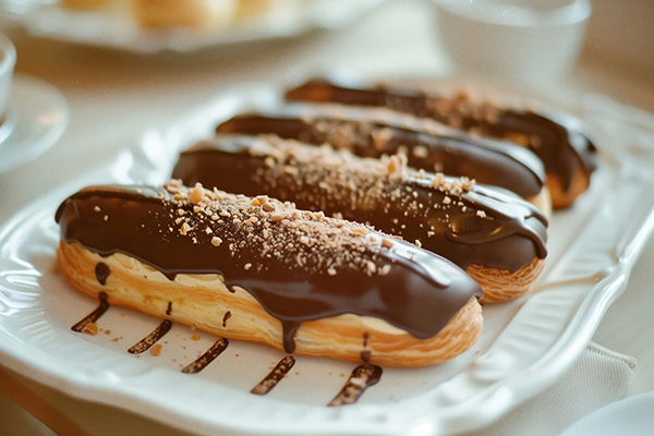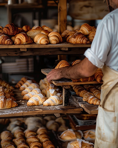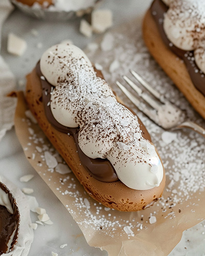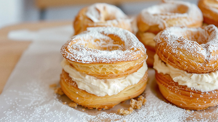 Behind glass windows of Parisian patisseries, shelves overflow with architectural wonders: éclairs glazed to mirror-shine and topped with crushed hazelnuts, cream puffs dusted with snow-white sugar, tarts crowned with perfectly fanned fruit. The warm scent of baking bread fills rustic bakeries where artisan loaves line wooden shelves like edible sculptures. Every image invites you to pause, to breathe in the aroma of fresh-baked comfort, to remember that some of life’s greatest pleasures begin with butter, flour, and time.