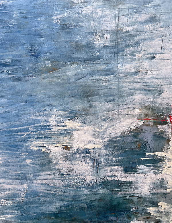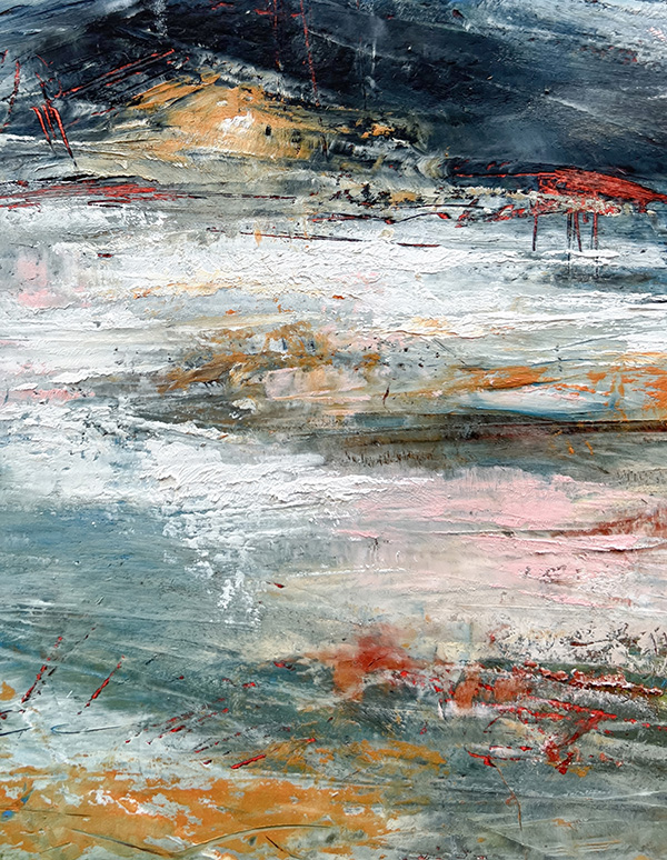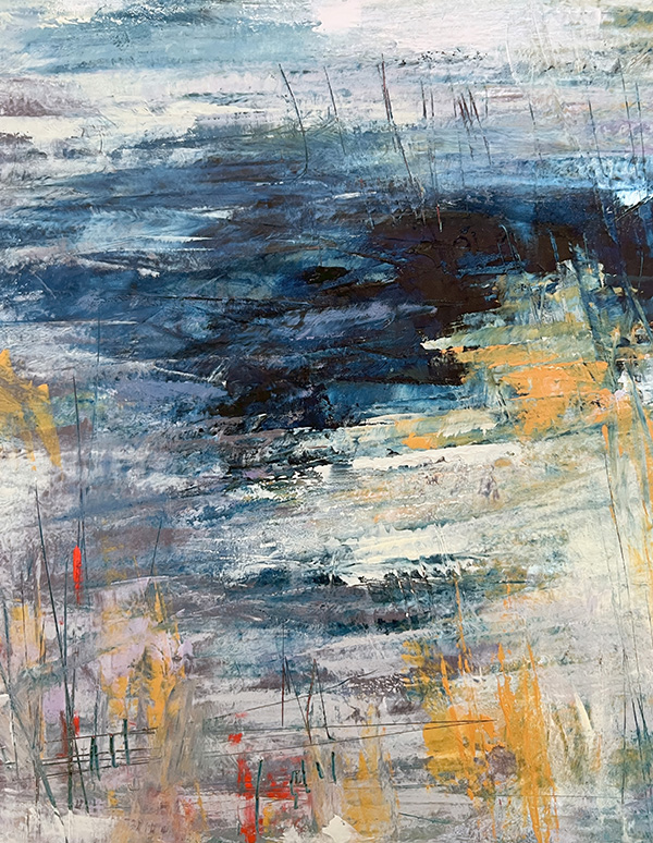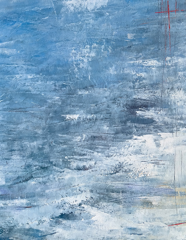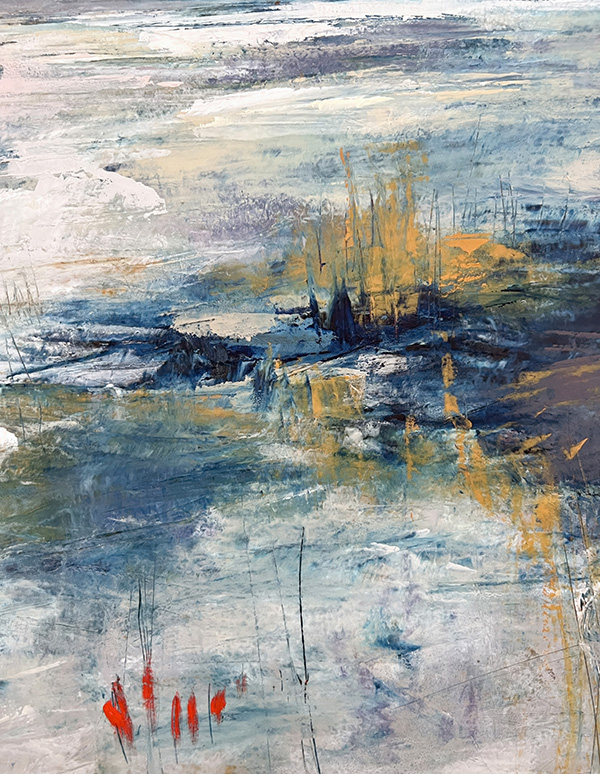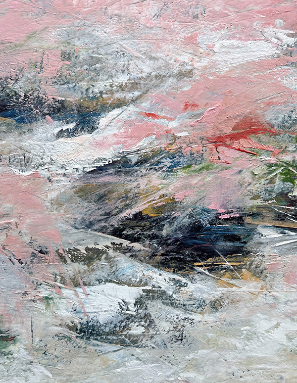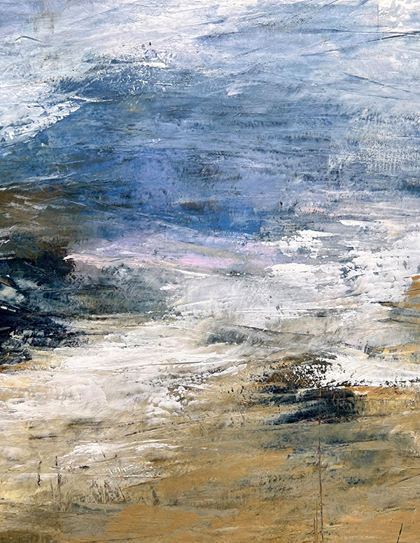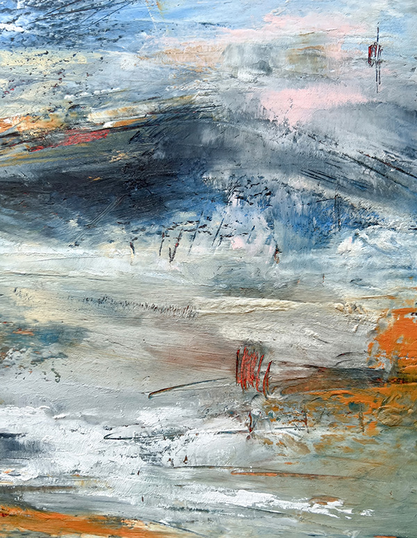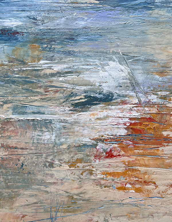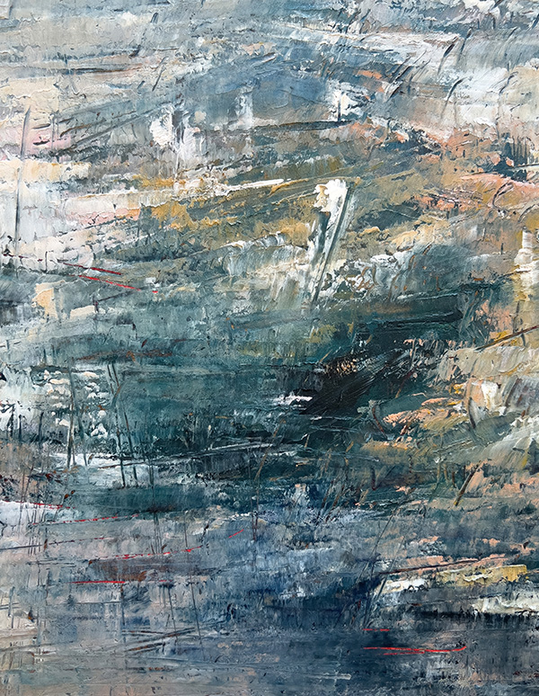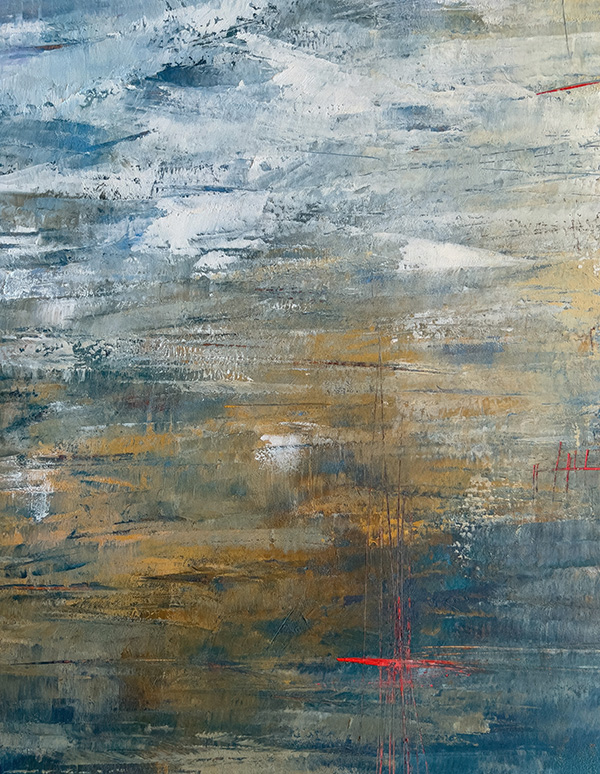 This collection isn’t about recognition; it’s about feeling. About stopping. About squinting into layers of teal and ochre and slate until something stirs—a memory of morning mist on a country road, the charge in the air before a storm breaks, that particular quality of light when you wake up on a lazy Saturday with nowhere to be. This series features close-ups of my abstract paintings—paintings which capture what it feels like to fall in love with the most ordinary moments of being alive.
