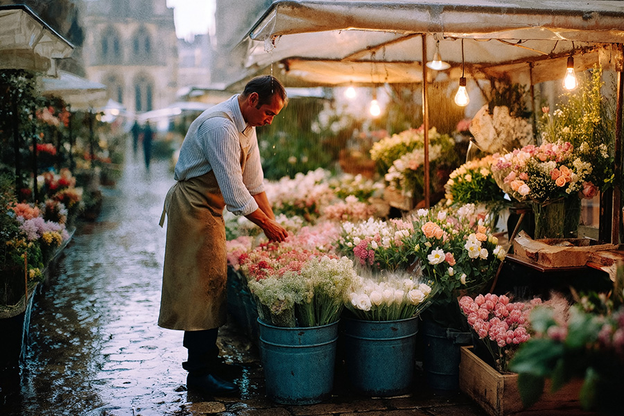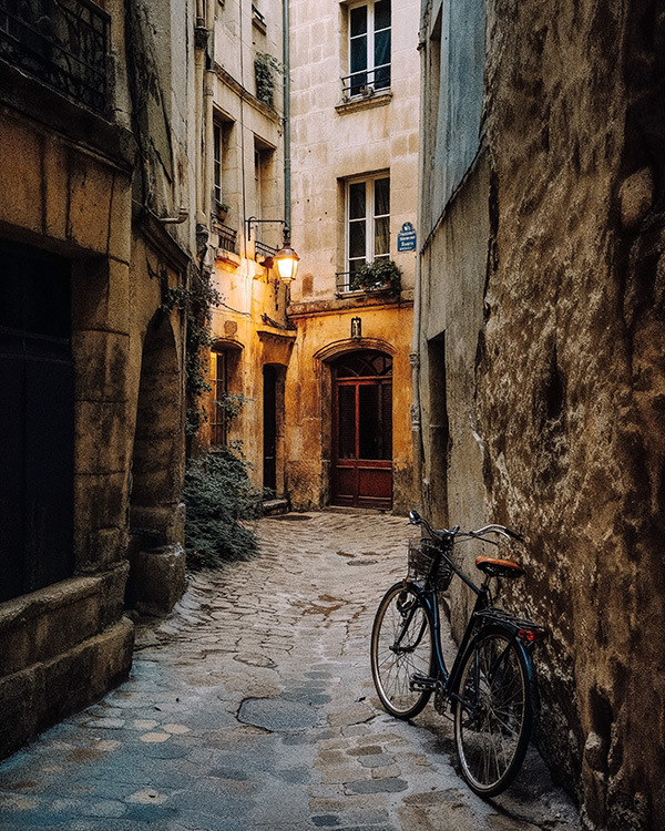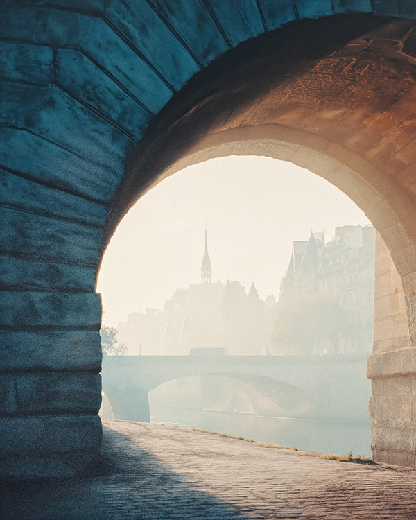 This collection pairs 81 watercolor-inspired illustrations with 54 film-style photographs, two ways of seeing the same quiet city. The illustrations dissolve Paris into soft washes and atmospheric color. The photography brings the grain back: real stone, real iron, real steam rising from a morning espresso. From Sacré-Cœur in the fog to a single autumn leaf on wet cobblestones, from the blazing glass of Sainte-Chapelle to a flower seller arranging stems in the rain, the range is deliberate. This is a complete visual system, not a highlights reel.