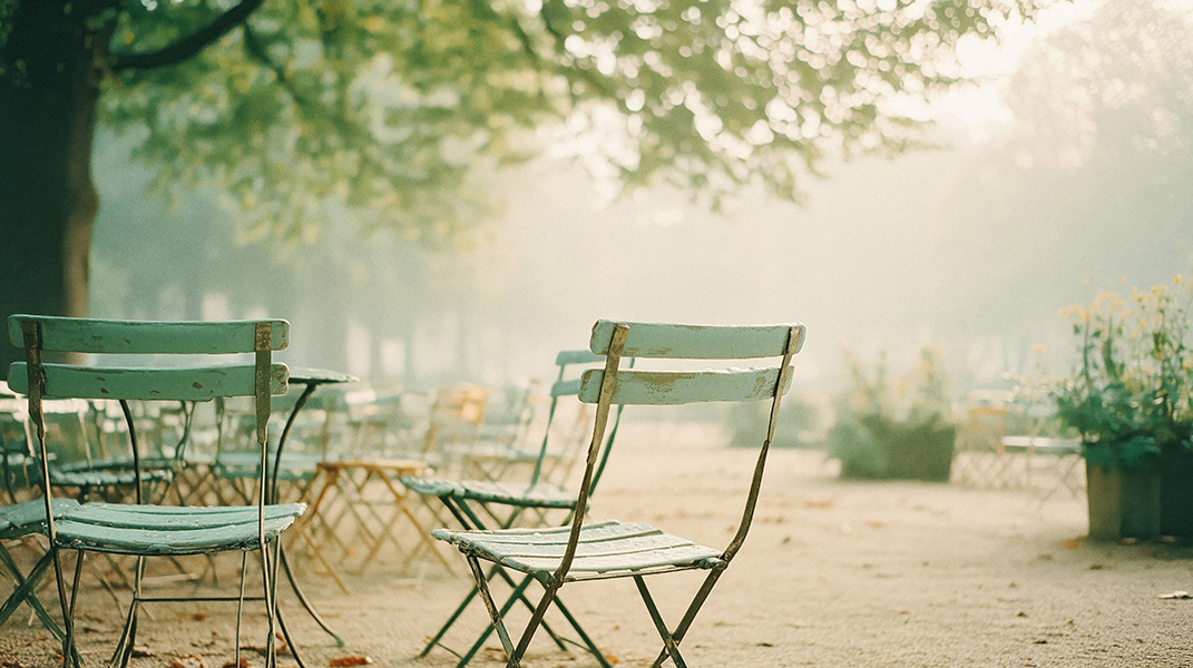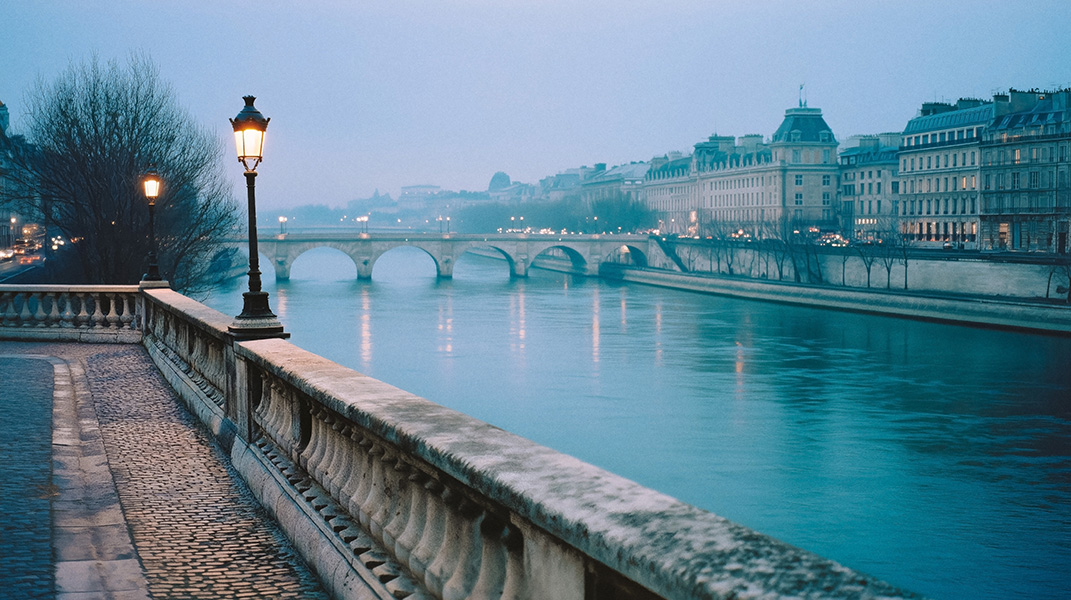 The postcard version of Paris glitters at night. This isn’t that. Paris at Dawn lives in the hour before the city wakes, when pink light creeps across limestone, empty garden chairs sit in the mist, and the Seine reflects a sky still making up its mind. It’s the Paris you’d see if you set an alarm nobody sets.